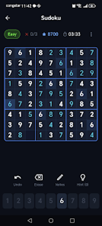 Sudoku Dark est un jeu de puzzle Sudoku au design moderne et agréable, conçu pour offrir une expérience de jeu optimale sur les appareils Android. Avec quatre niveaux de difficulté allant de facile à expert, ce jeu s'adresse à tous les amateurs de Sudoku, qu'ils soient débutants ou experts. Les fonctionnalités incluent un mode de notes pour les marques au crayon, une fonction d'annulation, ainsi qu'un suivi des erreurs pour vous aider à progresser dans votre apprentissage.